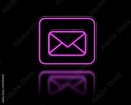 electronic mail, message, communication, notification, icon, symbol, mail, envelope, neon, light, glow, pink, magenta, square, black, glossy, surface, digital, modern, interface, technology, design, shape, outline, vibrant, bright, illuminated, shiny, contrast, isolated, graphic, illustration, abstract, sending, receiving, contact, correspondence, electronic, delivery, visual, concept, minimalist, simple, rounded, elegant