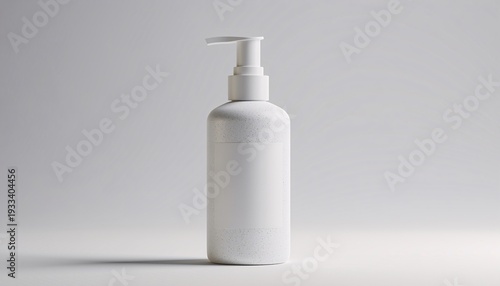 A plain white pump dispenser bottle standing upright on a light background, ready for product branding.