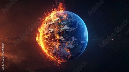 earth, globe, planet, space, sun, global, disaster, apocalypse, fire, nature, astronomy, sphere, heat, environment, science, burn, earth, background, destruction, danger, cataclysm, hell, blue, hot, glowing, warming, universe, explosion, end, star, light, climate, flames, atmosphere, concept, galaxy, armageddon, sky, illustration, energy