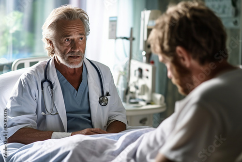 A portrait of a doctor engaged in a conversation with a patient, showing their effective communication and bedside manner Generative AI