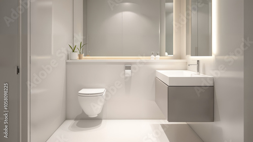 A Pristine Bathroom Showcasing a Sleek Toilet, Stylish Sink, and Modern Design Elements