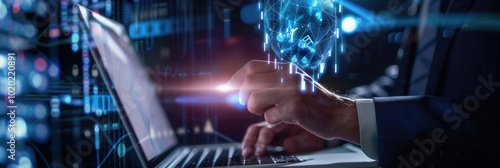 A professional engages with advanced technology to safeguard sensitive data in a dynamic cyber security setting. Generative AI