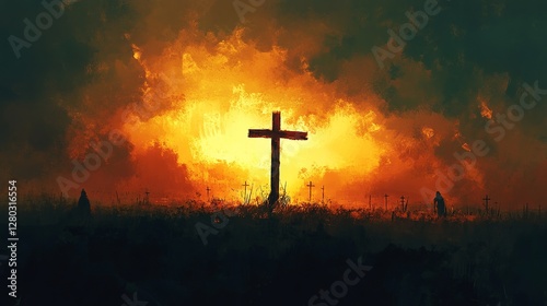 A profound Christian illustration portraying the crucifixion on Good Friday, featuring a poignant depiction of the cross as a symbol of hope and redemption.