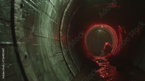 A rat in a sewer pipe close-up view.