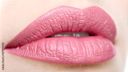 A realistic photo of lips, pink lipstick, white background, no shadows, hyper-realistic, high resolution, maximum detail, hyper-detailed, stock photography, matte