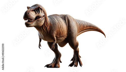 A realistic Tyrannosaurus rex dinosaur standing on two legs, on a transparent background