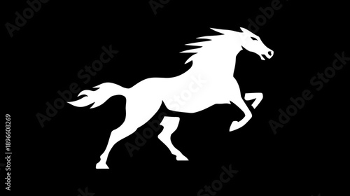 horse, white, black, silhouette, rearing, animal, mammal, equine, fast horse, body, leg, mane, tail, head, neck, motion, action, strength, power, energy, freedom, wild, nature, artwork, graphic, design, illustration, bold, contrast, shape, form, dynamic, movement, graceful, elegant, majestic, pride, spirit, courage, running, jumping, leaping, rising, elevated, upward, forward, presence, beauty, detail