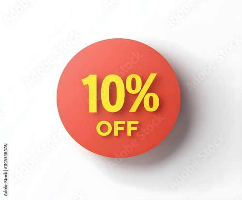 A red circular sticker with the text "10% OFF" in bold yellow font on a plain white background