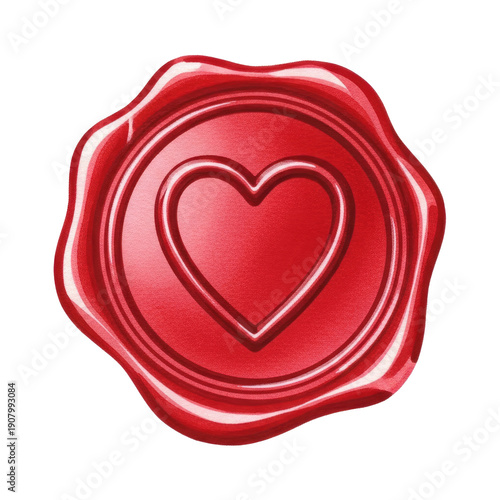 A red wax seal with a heart design on a png transparent