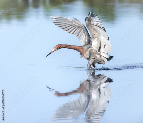 A Reddish Egret attacks some fish for dinner at the Merritt Island National Wildlife Refuge in Florida.
