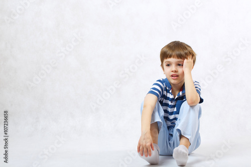 body part, boy, caucasian, childhood, digit, gesticulation, photogenic, horizontal, idea, italian, negative space, phalanx, portrait, reflective, 6, smile, t-shirt, white background, reflections, signs, gesture