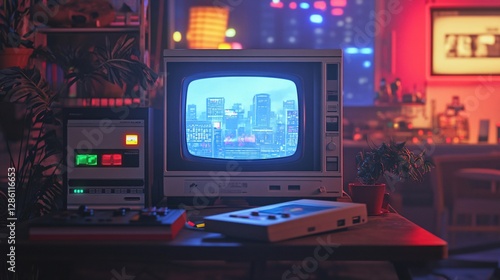 A retro gaming console with nostalgic CRT TV in the background