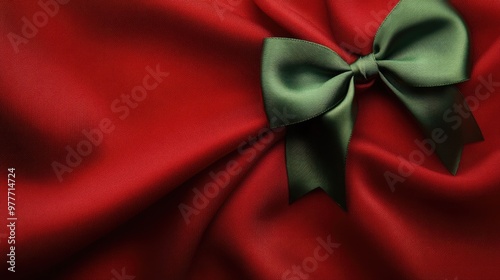 A rich red fabric background adorned with a small, cute green bow in the top corner. Plenty of blank space for text, making it perfect for high-end, personalized designs.