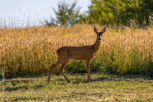 A roe deer on a field in the natural environment