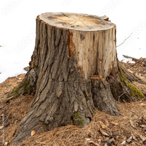 rough, stump, forest, isolated, transparent, white, background, wood, trunk, old, fungal, root, grass
