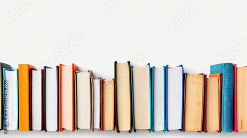 A row of books with brown covers set against a white background, perfect for studying and enhancing knowledge.