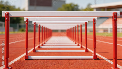hurdle, track, sport, athletic, red, white, running, competition, stadium, field, equipment, training, race, sport, exercise, fitness, venue, athletic, obstacle, racing, track, sports equipment