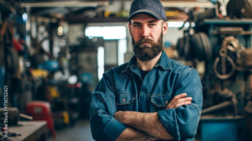 A rugged man with a warm smile and a stylish cap stands confidently indoors, his beard adding to his striking presence
