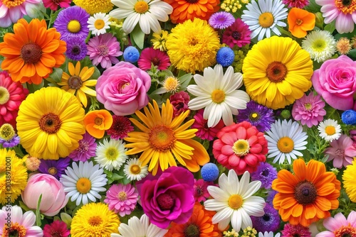 spring, seamless pattern, meadow, flower, rose, daisy, calendula, marigold, colourful, vibrant, pink, yellow, orange, white, blooming, realistic, detailed, floral, botanical, nature, background, texture, design, illustration, pattern, repeat, textile, wallpaper, fabric, digital artwork, graphic design, art, beauty, floral pattern, spring flower, floral pattern, floral background