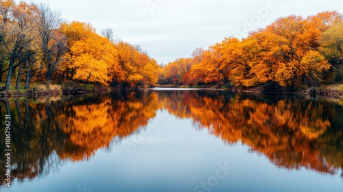 A serene landscape featuring vibrant autumn foliage reflecting in a calm lake, creating a picturesque scene of nature's beauty.
