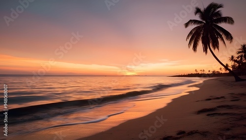 A Serene Sunset on the Shoreline, Where the Waves Kiss the Sand Under a Warm Sky