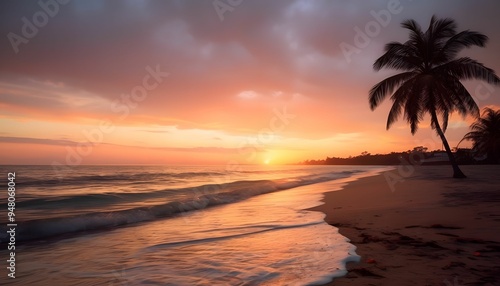 A Serene Sunset on the Shoreline, Where the Waves Kiss the Sand Under a Warm Sky