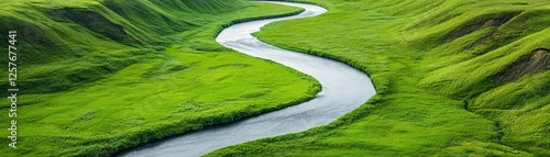 river, greenery, landscape, nature, hill, serenity, calmness, harmony, lush, exploration, vista, peaceful, stream, tranquil, rejuvenation, vibrant, vale, flow, relaxation, earth, horizon, meadow, scenery, sunlight, picturesque, ecosystem, fauna, ecology, fertile, scenic, breathtaking, terrain, winding, biodiversity, wild, beauty, flora, water, bright, adventure, environment, travel, natural, summer, fresh, countryside