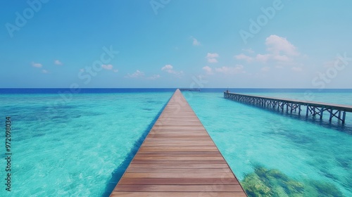 A serene wooden pier extending into clear blue waters, inviting peaceful reflections and breathtaking ocean views.