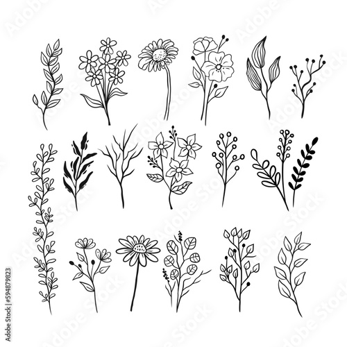 a set of hand-drawn floral drawing