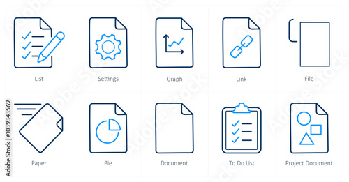 list, setting, graph, link, file, paper, pie, document, icon, vector, illustration, concept, design