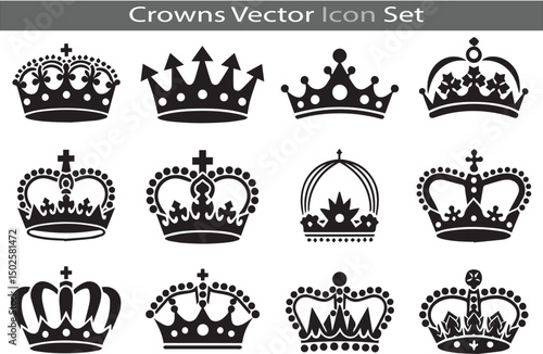 crown, vector, icon, set, label, vintage, design, symbol, royals, king, signs, banner, badge, collection, heraldic, queen, illustration, element, frame, emblem, silhouette, logotype, retro, decoration, luxury, royalty, authority, elegance, majestic, wealth, clip art, cut-out, insignia, no people, award, princess, horizontal, jewellery, outline, success