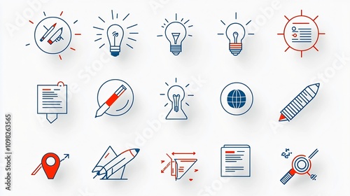 A set of minimalistic thin line icons depicting the key steps in project management including planning resource allocation and goal setting presented in a clean and modern style