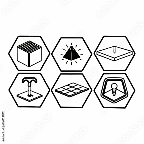 hexagon, box, cube, pyramid, light, platform, racked, grid, bulb, display, presentation, product, fixture, furniture, structure, arrangement, collection, composition, shape, geometric, design, element, symbol, graphic, art, drawing, line, outline, clip art, signs, pictogram, set, group, object, single, abstract, modern, minimalist, style, simple, black