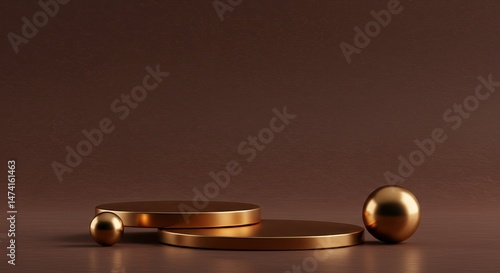 set, gold, sphere, brown, background, way, stage, dais, sophistication, elegance, shiny, concept, scene, product, blank, platform, abstract, design, space, studio, empty, three-dimensional, template, minimal, presentation, illustration, display, modern, pedestal, shape, geometric, showcase, floor, exhibition, racked, object, cylinder, room, show, advertising, metal, wall, interior, rendering, pink, bright, clean, black