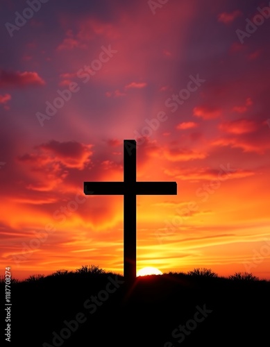 A silhouette of a cross against a vibrant sunset. A powerful image representing faith, hope and peace.