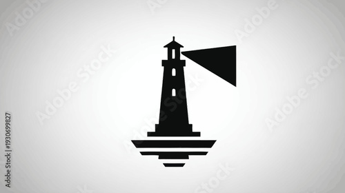 lighthouse, silhouette, black, white, beacon, light, tower, structure, guide, navigation, sea, ocean, coast, shore, beam, shape, vector, design, graphic, illustration, symbol, icon, element, perspective, style, gradient, background, simple, modern, minimal, art, drawing, visual, calm, serene, building, construction, location, travel, safety, warning, signs, emblem, logotype, digital, image, creative, flat