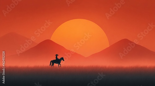 silhouette, rider, horseback, vibrant, sunset, horse, mountain, nature, landscape, adventure, cloud, background, romance, open, scenic, expanse, immensity, dusk, western, culture, action, scene, evening, peaceful, autumn, orange, freedom, breed, journey, travel, rodeo, colours, terrain, rural, leisure, beauty, cowboy, saddle, storm