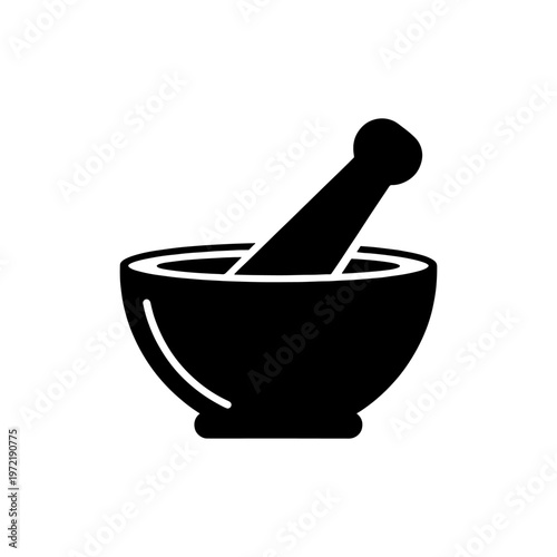 A simple black icon depicts a traditional mortar and pestle used for grinding a silhouette