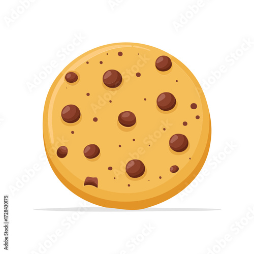A simple flat chocolate chip cookie icon with a clean, minimal design, round shape, and scattered chocolate chips to symbolize sweets or desserts