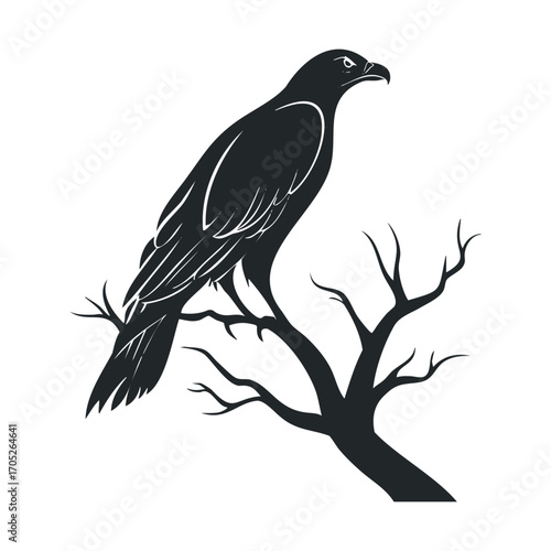 eagle, bird, predator, bird of prey, nature, wildlife, drawing, vignetting, illustration, line, hand-drawn, symbolic, wild, power, strength, majestic, perched, tree branch, silhouette, monochrome, avian, symbol, graphic, design, powerful, emblem, hawk, hawk, logotype, vector