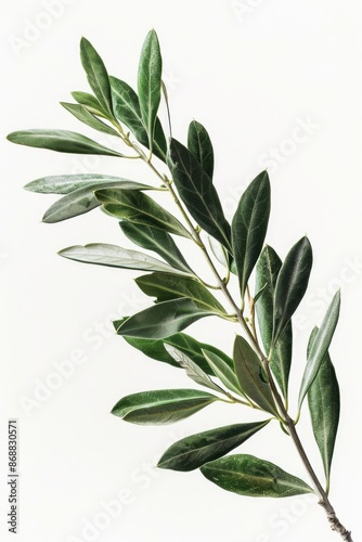 A single green branch with leaves on a plain white background, ideal for use in designs about nature and the environment