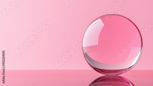 A single Petanque ball balanced on a reflective glass surface, pink background