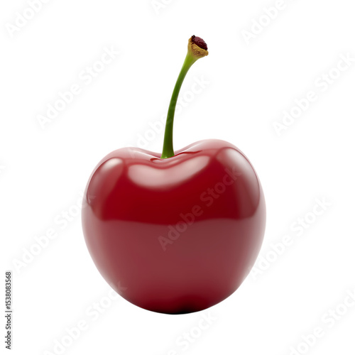 A single red cherry with a green stem isolated on transparent background