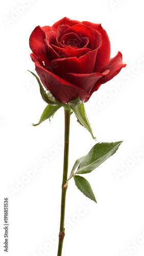 rose, red, flower, bloom, droplet, water, wet, stem, leaf, green, single, beautiful, romantic, love, symbol, flora, plant, garden, nature, botany, decoration, gift, anniversary, valentine, day, beauty, fragrant, delicate, elegant, lush, fresh, isolated, object, botanical, blooming