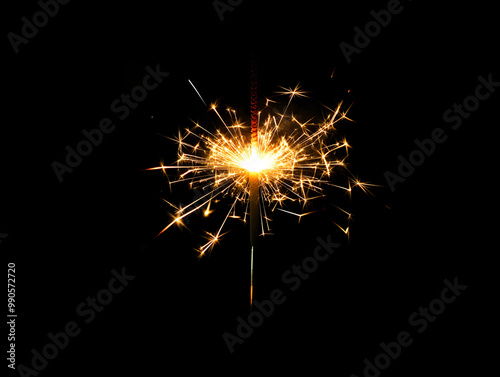 A single sparkler glowing in the dark for New Year’s.