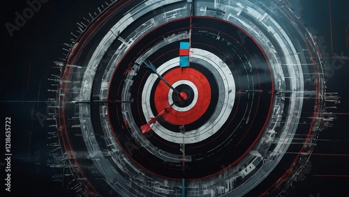 A sleek, abstract illustration of a bull's-eye target with an arrow in the middle, surrounded by modern digital elements representing business growth and financial success