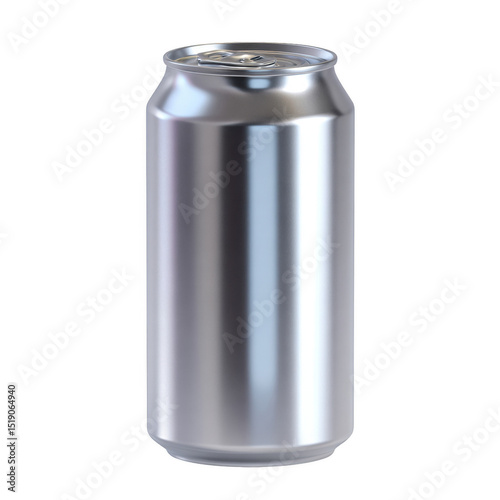 A sleek, silver beverage can showcasing a smooth surface and classic cylindrical shape. cut out. transparent background