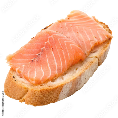 A slice of salmon on a slice of bread isolated on transparent background