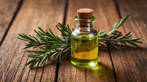 a small bottle of rosemary essential oil isolated background