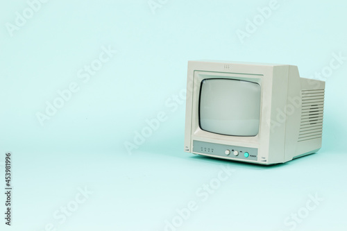 A small vintage monitor on a light background. Space for the text.